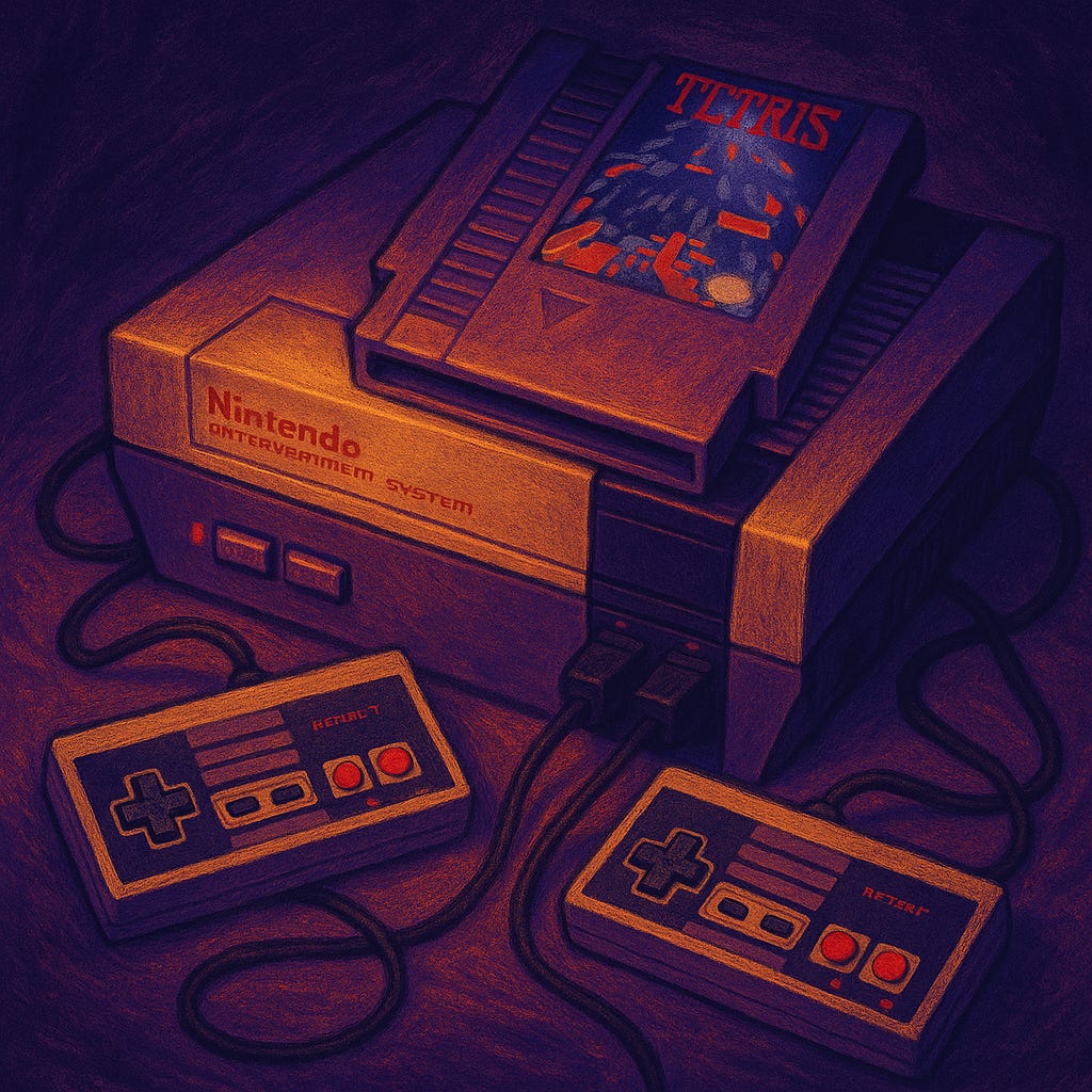 At the end of the row sat a gray box, a little dusty: an original Nintendo Entertainment System. He put the PS5 to sleep and pushed the NES power button, switching it on. Tetris was already loaded. He smiled. His dad had an old Game Boy in the master bathroom – Tetris, the only cartridge he owned – and his high scores were practically impossible to reach.